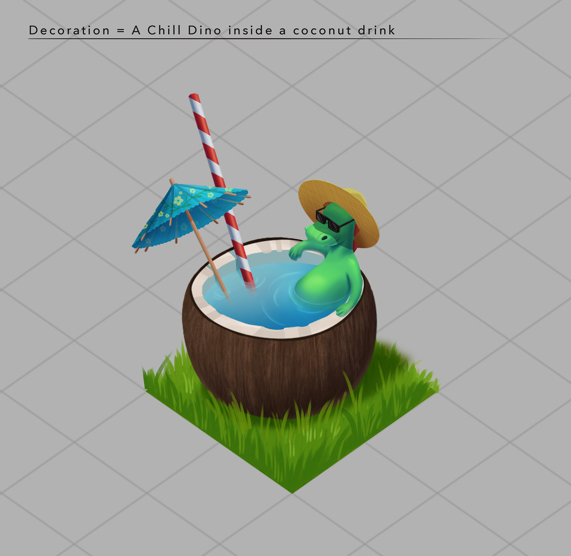 A fun project to create a character and a decoration for an isometric game using the mixing "Dinosaur + Summer" as theme.